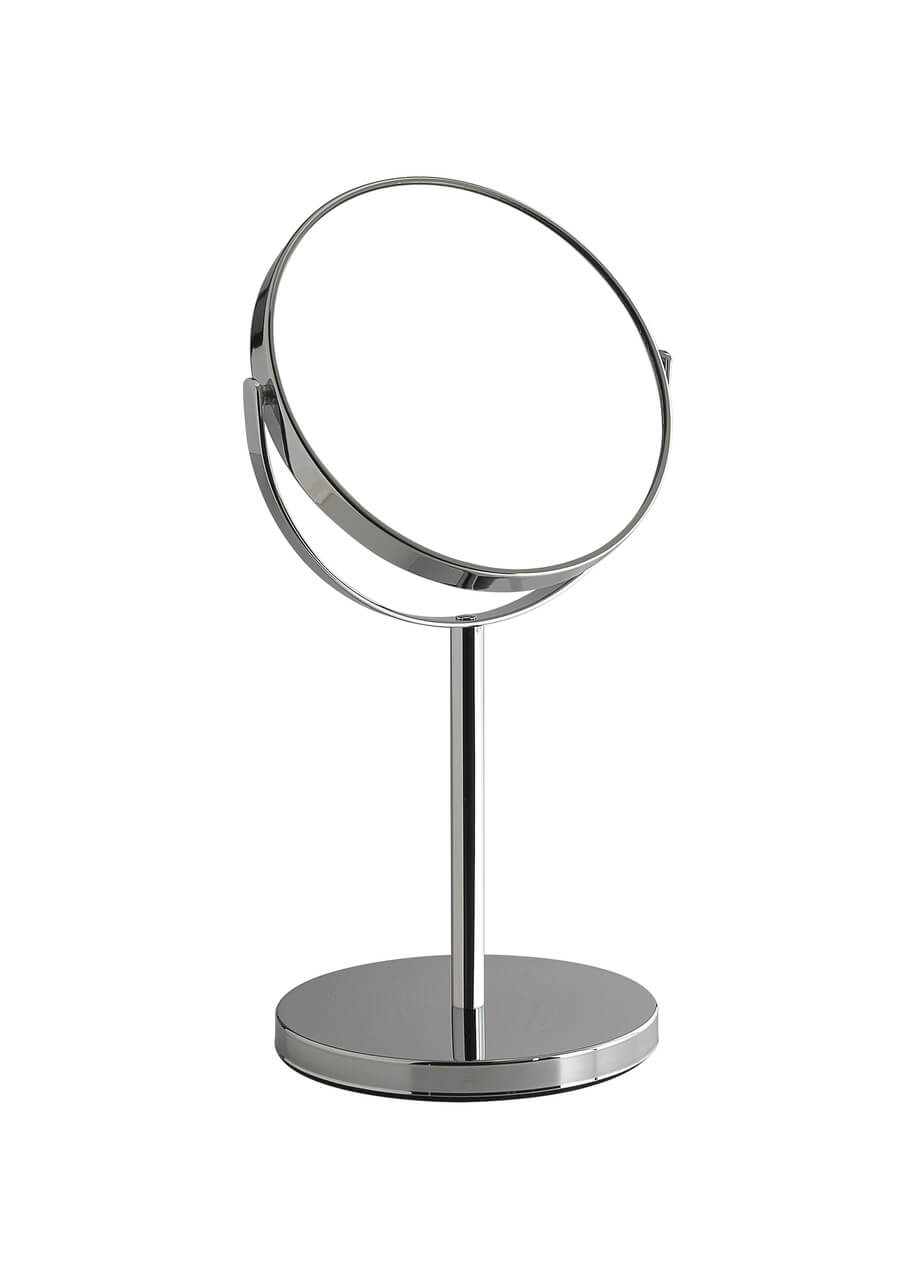 Kosmetikspejlet er fremstillet i robust metal, hvilket sikrer høj stabilitet og lang holdbarhed. Den solide konstruktion betyder, at spejlet står sikkert og føles stabilt i brug – en vigtig detalje, når der arbejdes med høj forstørrelse. Materialevalget gør desuden spejlet velegnet til badeværelsets fugtige miljø, hvor kvalitet og slidstyrke er afgørende.